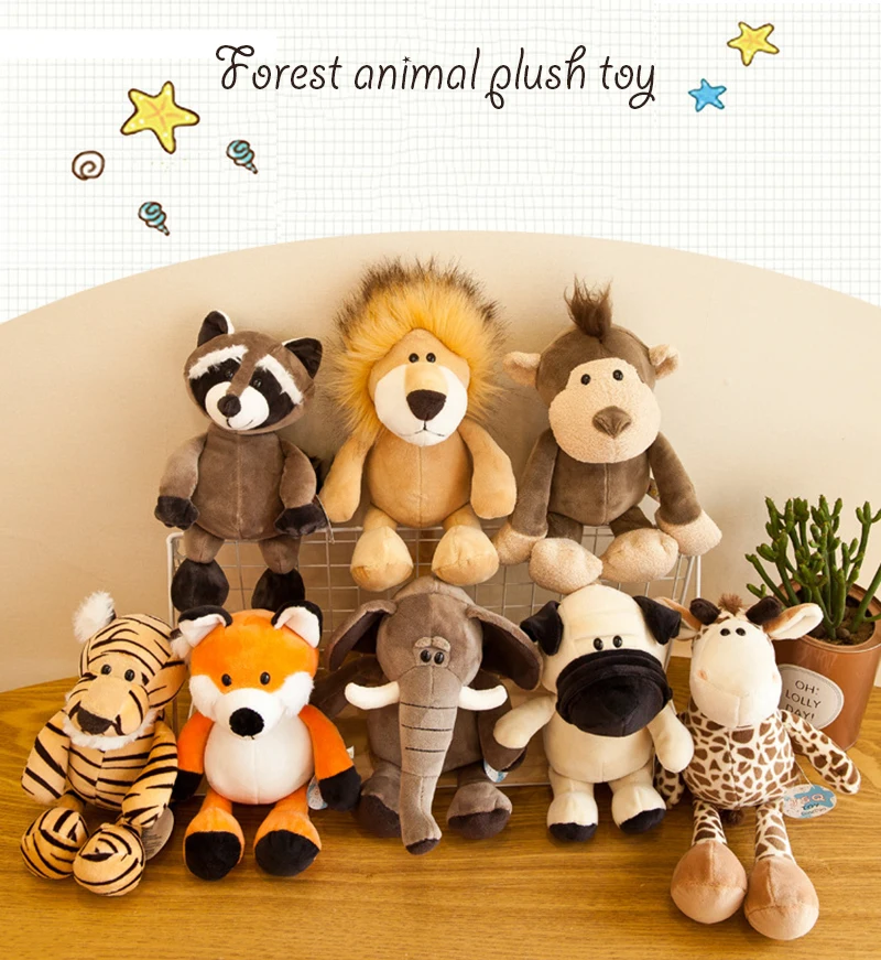 25cm Cute Funny Cartoon Stuffed Animals Soft Plush Toy Elephant Monkey Raccoon Fox Lion Tiger Plush Animal Dolls For Kids Stuffed Plush Animals Aliexpress